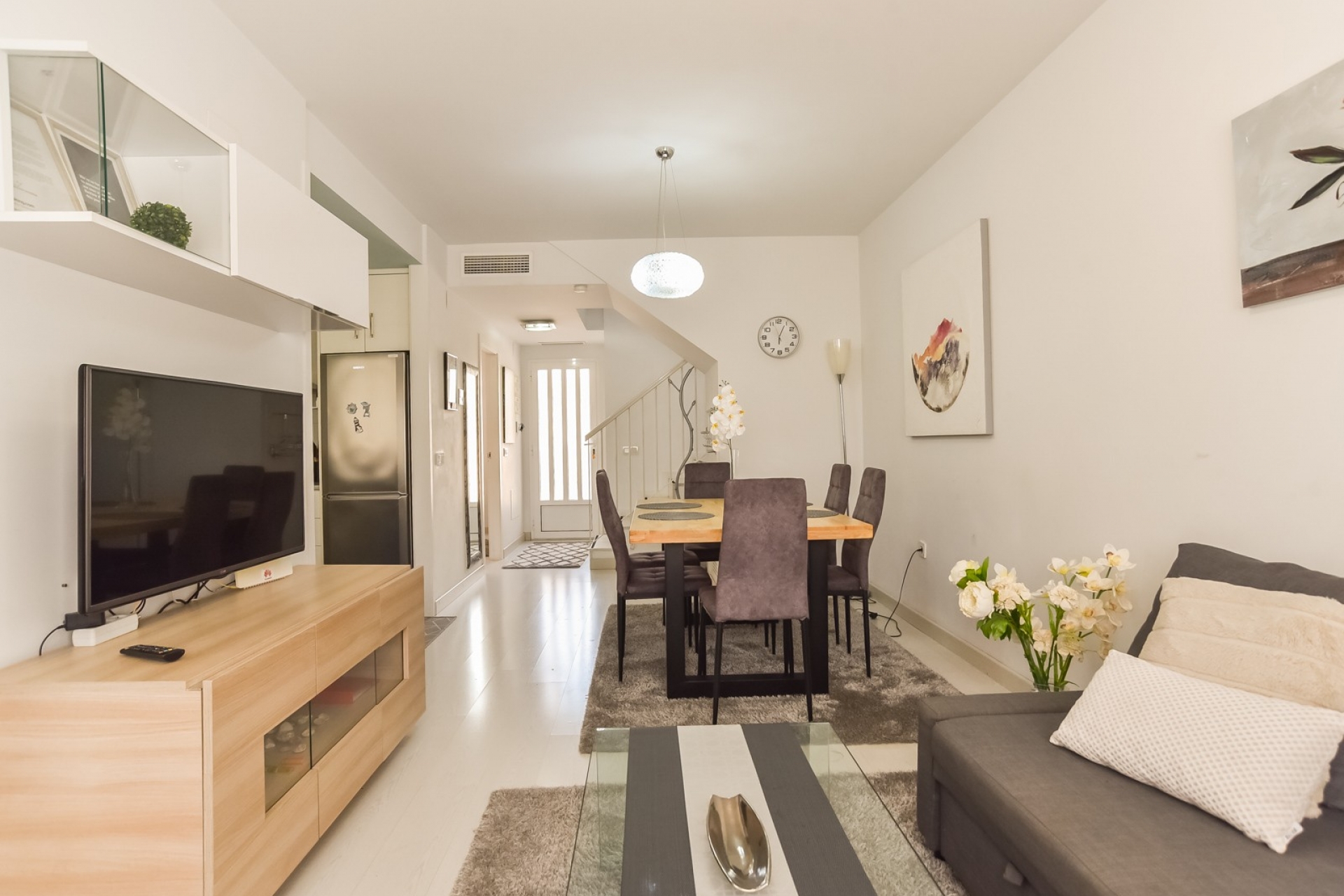 Dieses Stadthaus wird voll möbliert und in ausgezeichnetem Zustand verkauft. Es verbindet modernes Design mit allen notwendigen Annehmlichkeiten. Ob als ständiger Wohnsitz, Feriendomizil oder Investition, diese Immobilie ist eine einzigartige Gelegenheit an der Costa Blanca.