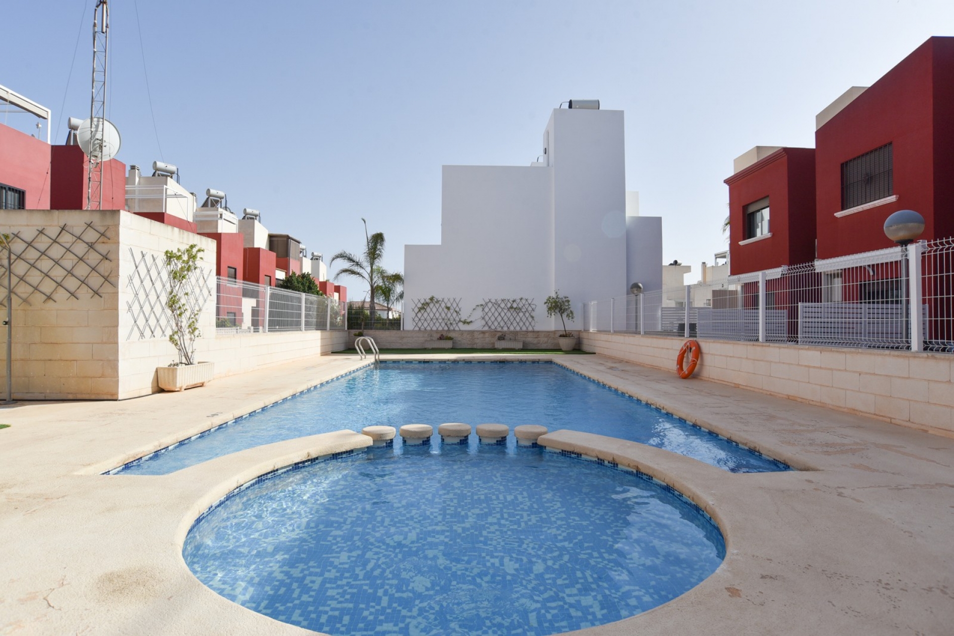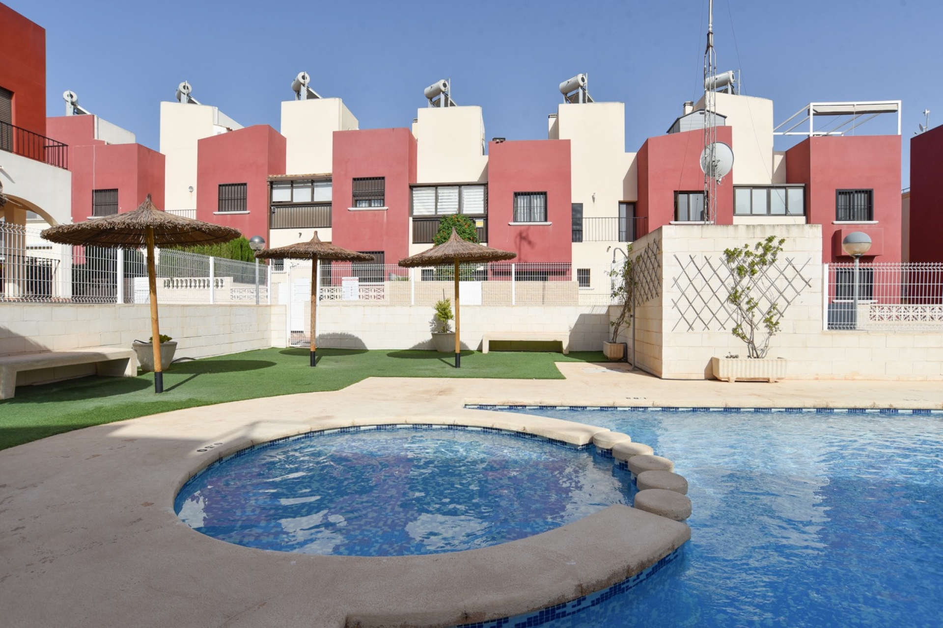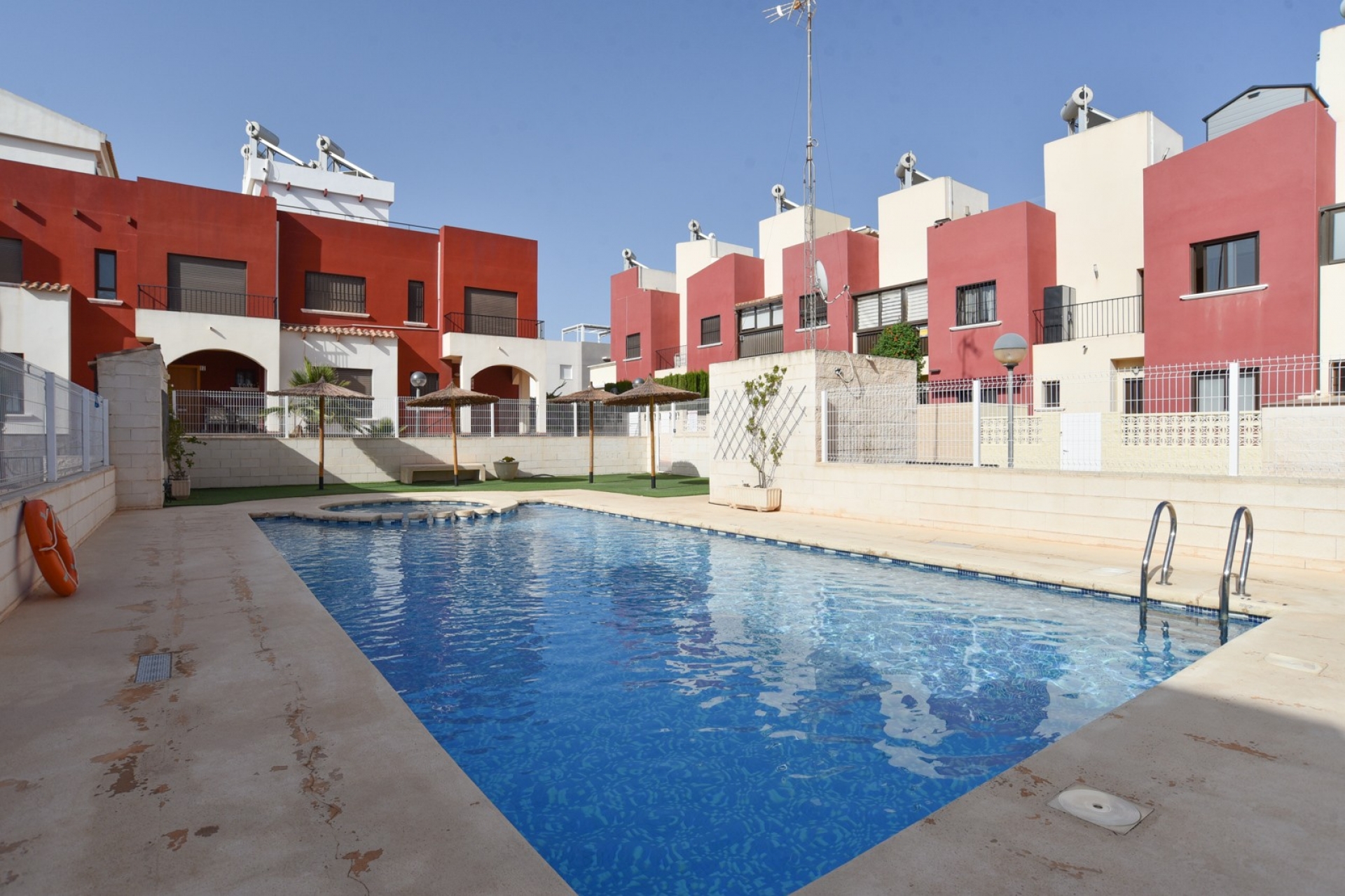 Dieses charmante Stadthaus mit 3 Schlafzimmern und 2 Bädern, das 2013 gebaut wurde, befindet sich in einer hochwertigen Wohnanlage an der Costa Blanca. Mit 89 m² gebaut, eine überdachte Terrasse von 16 m² und ein privates Solarium von 25 m², ist diese Eigenschaft ideal für diejenigen, die Komfort, Privatsphäre und eine hervorragende Lage in der Nähe von allen Annehmlichkeiten suchen.