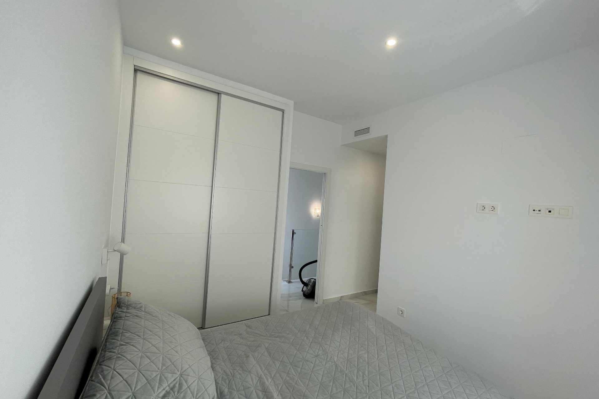 Diese wunderschöne Villa befindet sich in einem ausgezeichneten Zustand und bietet ein modernes Design, das Komfort und Stil vereint. Der offene Wohn- und Essbereich mit moderner Küche schafft eine helle und einladende Atmosphäre – ideal für den Alltag und gesellige Abende. Im Erdgeschoss befindet sich ein geräumiges Schlafzimmer mit Einbauschränken sowie ein vollständiges Badezimmer. Im Obergeschoss führt ein gemütlicher Flur auf eine kleine Terrasse – perfekt für den Morgenkaffee oder entspannte Momente. Das zweite Schlafzimmer verfügt über ein elegantes eigenes Bad, während das Hauptschlafzimmer eine ruhige Rückzugsoase mit eigenem Bad und Zugang zu einer sonnigen privaten Terrasse bietet – ideal zum Entspannen unter der mediterranen Sonne. Die Villa ist mit Klimaanlage ausgestattet und bezugsfertig – Komfort und Qualität vom ersten Tag an. Benijófar liegt im Herzen der Costa Blanca und ist eine charmante, gut angebundene Stadt in der Provinz Alicante. Mit ihrem entspannten mediterranen Flair verbindet sie spanische Tradition mit modernem Komfort. Nur wenige Autominuten von den Stränden von Guardamar und Torrevieja entfernt und mit allen wichtigen Einrichtungen in fußläufiger Nähe, ist Benijófar ideal für den Dauerwohnsitz oder den Urlaub.