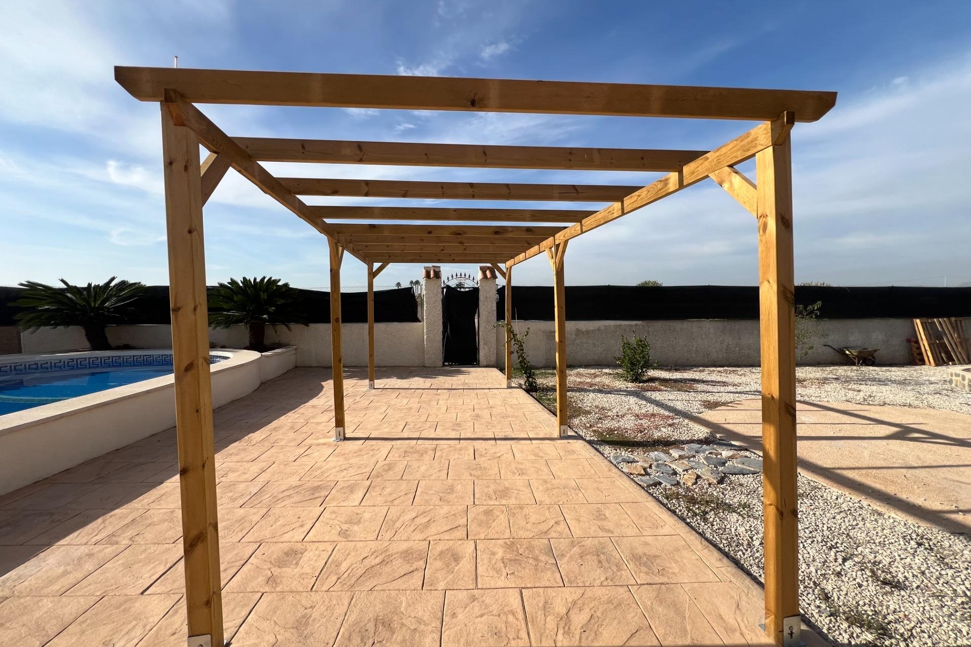 Descubre esta encantadora villa independiente ubicada en la tranquila localidad de Dolores, Alicante. Este hogar luminoso y bien mantenido cuenta con un diseño espacioso que incluye una amplia cocina equipada y un salón-comedor acogedor. Dispone de tres cómodos dormitorios; dos de ellos cuentan con armarios empotrados mientras que el tercero ofrece baño privado para mayor comodidad. La propiedad también dispone de otro baño familiar adicional, perfecto para visitas. Desde la cocina se puede acceder al garaje doble integrado. Un hermoso porche cubierto brinda el espacio ideal para disfrutar cenas al aire libre rodeado del esplendor natural del entorno. La zona exterior es verdaderamente impresionante: una piscina privada situada dentro del recinto amurallado sobre una parcela generosa de aproximativa de 1700 m2 adornada con árboles frutales y arbustos maduros creando un ambiente sereno y relajante. Además, hay un edificio anexo equipado como cocina de verano completo junto a barbacoa and comedor abierto así como WC separado. Este inmueble destaca no solo por sus comodidades internas sino también por su ubicación estratégica; goza tranquilidad absoluta debido a estar rodeada campos pero permanece a poca distancia caminando hacia los servicios locales esenciales e instalaciones urbanas necesarias diarias. Situación muy conveniente gracias a fácil acceso vehicular tanto playas cercanas cómo autopista dirección aeropuerto internacional Alicante/Elche garantizando conexiones rápidas hacia otros destinos destacados.