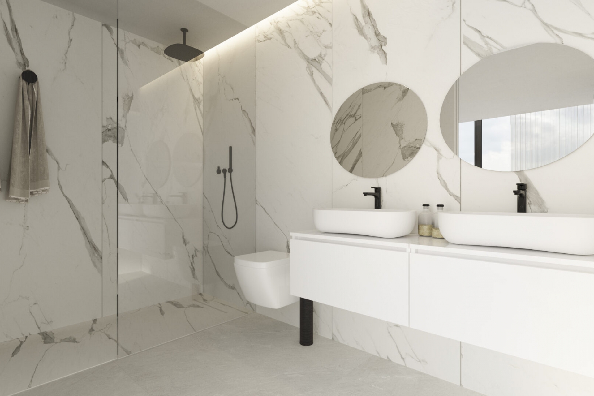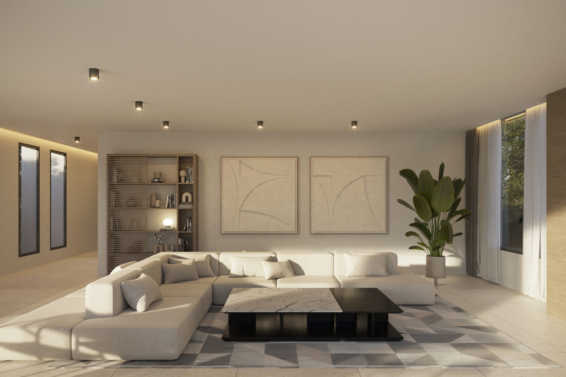 Het interieur van de villa is ontworpen om maximaal comfort en elegantie te bieden. Met vier slaapkamers, elk uitgerust met inbouwkasten, biedt de villa voldoende opbergruimte en organisatie. De vier badkamers zijn ontworpen in een moderne en functionele stijl. Vloerverwarming zorgt voor een warme en gezellige sfeer tijdens de koudere maanden. De keuken is uitgerust met hoogwaardige apparatuur, wat het bereiden van maaltijden vergemakkelijkt en een eersteklas culinaire ervaring biedt. Elke binnenruimte is ontworpen om het comfort en de levensstijl van de bewoners te maximaliseren.
