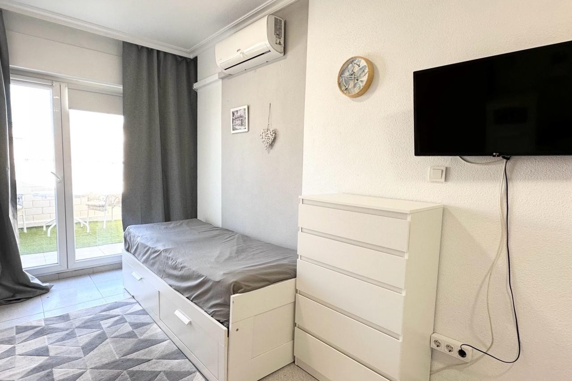 Een van de opvallende kenmerken van deze studio is het prachtige terras, met een panoramisch uitzicht op de zee en het levendige stedelijke landschap van Torrevieja. Met een royale buitenruimte is het de perfecte plek om te genieten van al fresco diners, te ontspannen met een goed boek, of gewoon te genieten van adembenemende zonsondergangen over de horizon.