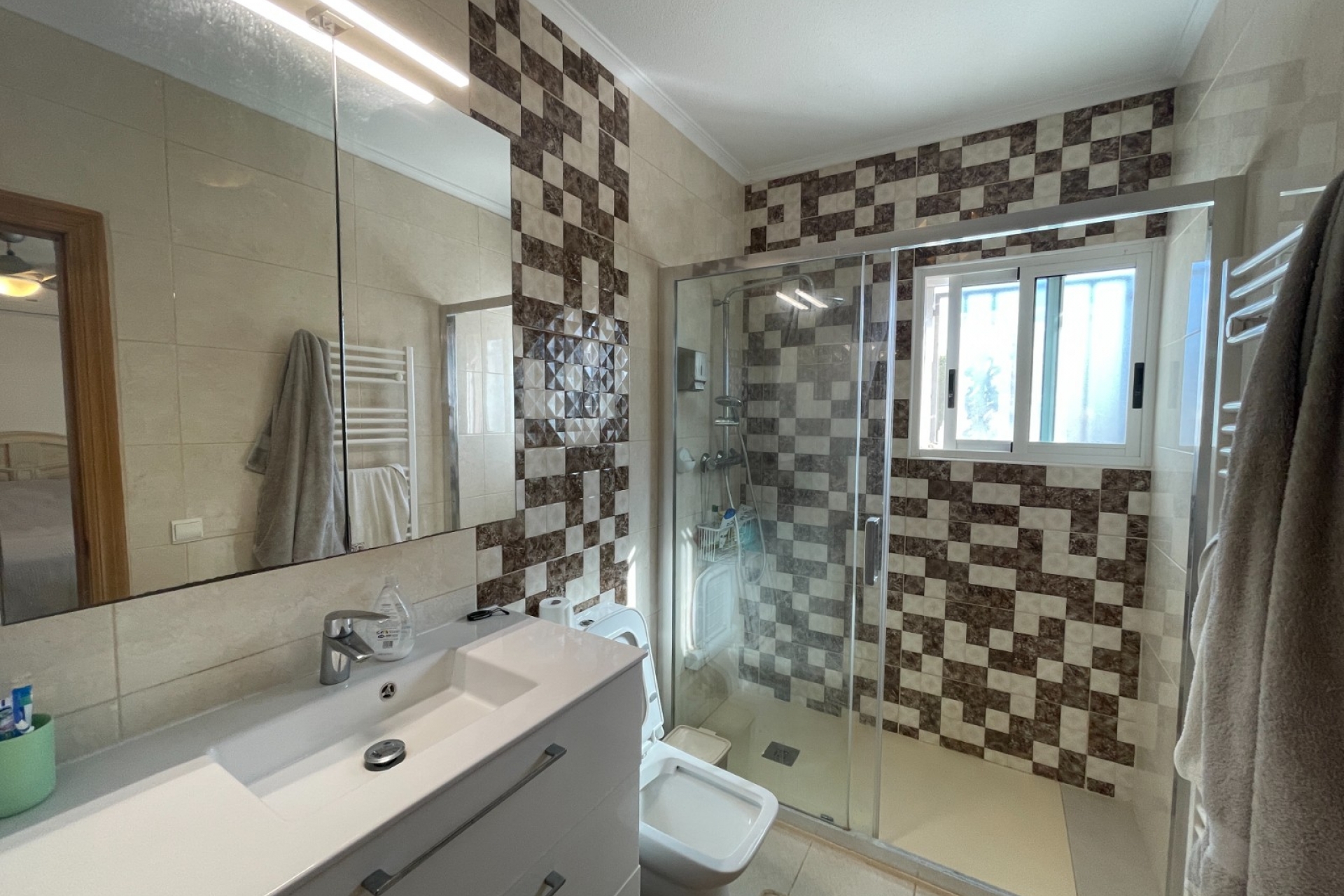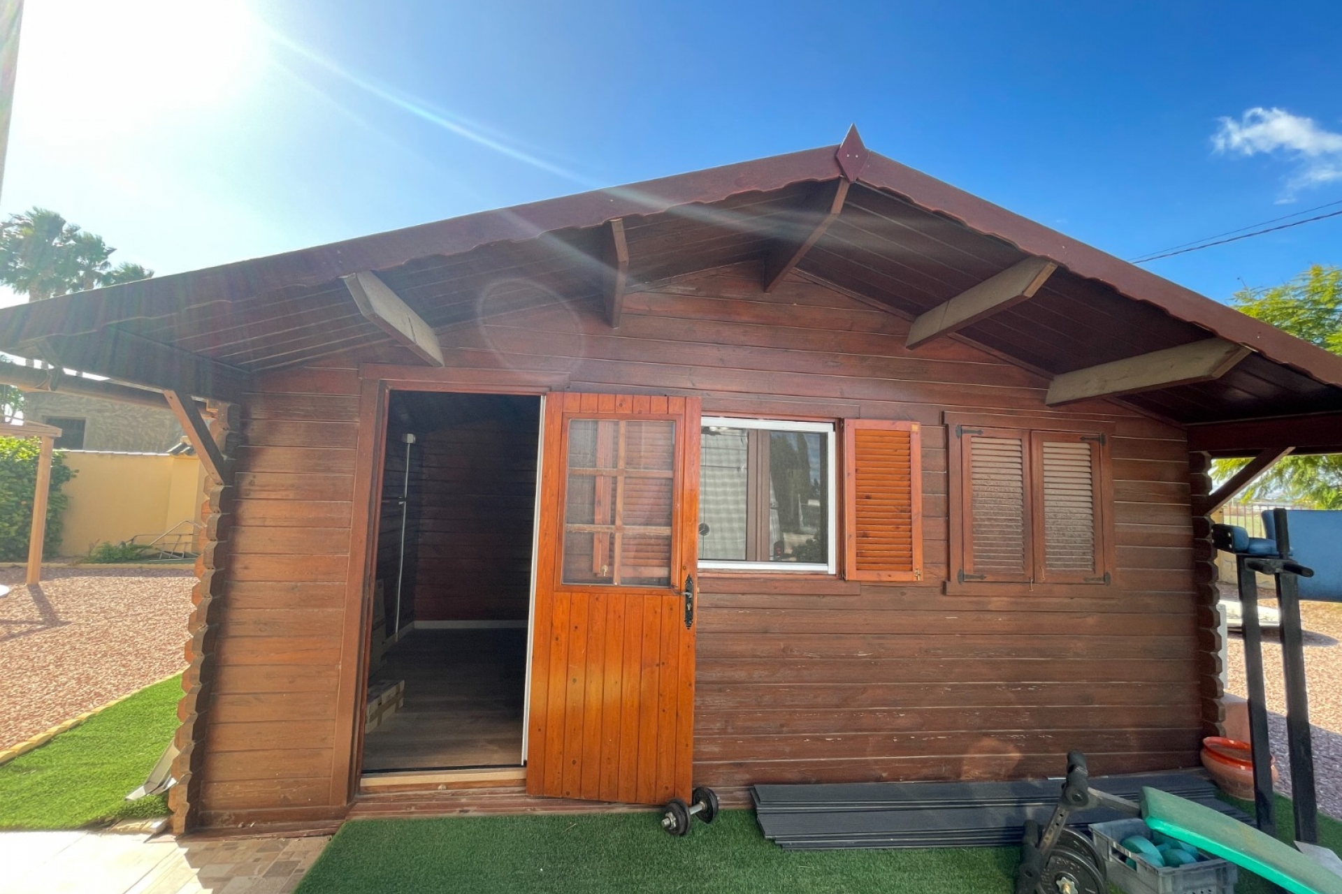 Detached villa in Catral – 239 m² built on a plot of over 2,100 m²Discover this charming home with all the comfort and space you need. The main house features 3 bedrooms, one of them en suite, 2 full bathrooms, an independent kitchen, a spacious living room, and a separate dining area. It also includes a glazed terrace, perfect for enjoying the sunshine even on cooler days. On the same plot, there is a cozy 45 m² wooden guest house with 1 bedroom, bathroom, kitchen, and living room — ideal for guests or a family member who wants their own space.Outdoors, you'll find the perfect setting to enjoy life outside:Garden with two storage sheds,Private pool with a shaded chill-out area, and plenty of space to relax or spend time with family. Located in Catral, this property has been built for over 20 years, connected to water and electricity, and paying SUMA taxes (350€/year) . Important: It does not have a habitation certificate, but it can be lived in without any problem.A unique opportunity for those seeking space, independence, and tranquility in a natural setting.