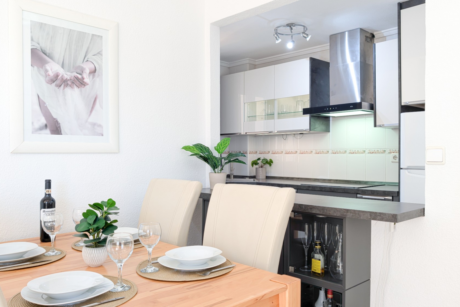 The apartment is sold furnished, including all kitchenware, beds, TV, outdoor furniture, etc.