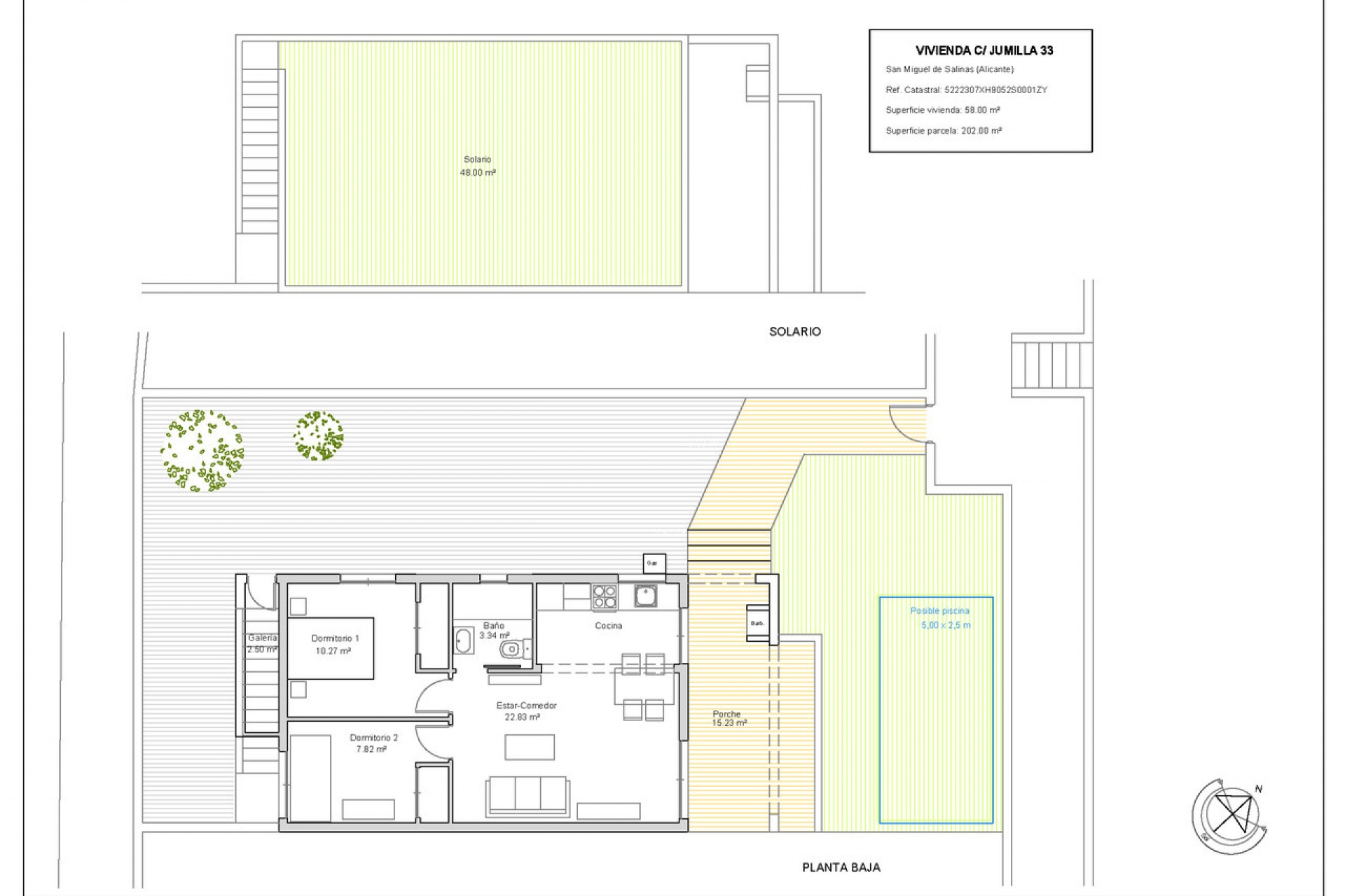 This charming renovated bungalow in Blue Lagoon offers a Mediterranean lifestyle in one of the quietest and most established areas of the Orihuela Costa. With 58 m² of living space, a private 48 m² solarium, and a generous 202 m² plot, it stands out for its exterior spaciousness and its 147 m² garden, perfect for enjoying the weather all year round. The fully renovated home features 2 bedrooms, 1 bathroom with a shower and screen, wood-effect laminate flooring, and a brand-new kitchen equipped with all appliances. The solarium has been tastefully finished with artificial grass and a brezo enclosure, provides an ideal space to relax in complete privacy. In addition, the large plot allows the future owner to install a private pool if desired (at their own expense).The location is unbeatable: just a few minutes from the El Limonar International School, several golf courses, the Villamartín shopping center, the Marimba Blue complex (with a pool, restaurant, and 3 paddle tennis courts), and the well-known Greenlands Blue Lagoon, with its spectacular mini-golf and thatched-roof restaurant.