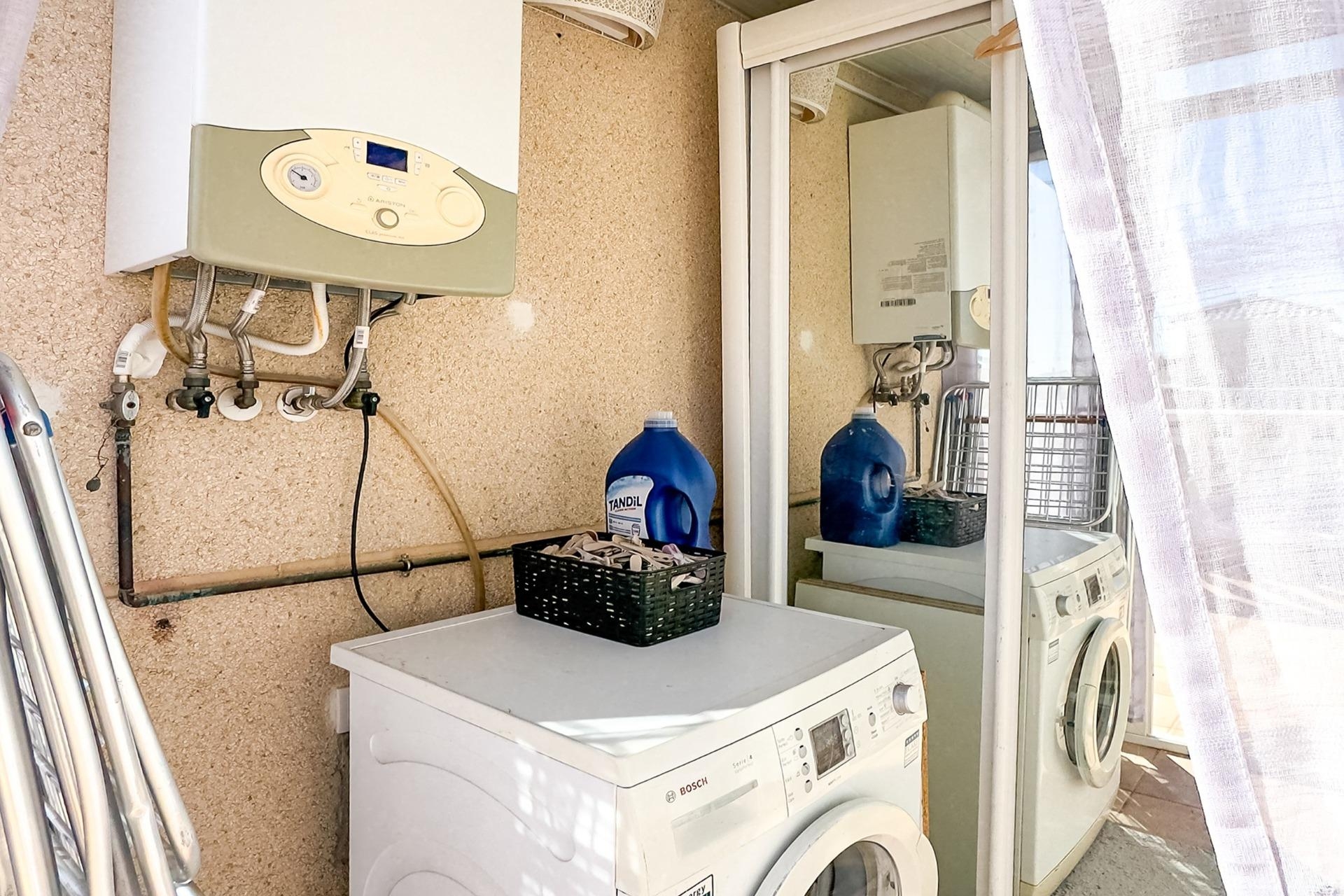 WONDERFUL DETACHED VILLA (approx. 105 m² + TERRACES) WITH GARDEN, TERRACES FACING SOUTHEAST, AND LARGE COMMUNAL POOL! Spacious villa, modernly renovated, and strategically located in Los Almendros between Torrevieja and La Zenia, close to both the AP7 and supermarkets, schools, and other services. In just over 10 minutes by car you reach the centre of Torrevieja, and in just over 5 minutes both the large shopping centre la Zenia Boulevard and the beautiful beaches of Punta Prima. A wonderful house to live in all year round! KEY FEATURES: –Well-maintained gated community with large pool area. –Garden/terrace (approx. 80 m²) with barbecue. –Ground floor: Entrance, large living room with gas fireplace, large independent kitchen (fully equipped), 1 WC, and 1 bedroom (now used as an office). –Floor 1: 1 bathroom (with shower) and 2 large bedrooms, one of which has access to the large balcony facing southeast. –Floor 2: 1 large bedroom, laundry room, and a large terrace, also facing southeast. –Very well maintained – recently renovated and everything still in perfect condition, fully furnished and ready to move into immediately! OTHER ADVANTAGES: –Parking on private street within the community. –Heating (fireplace and radiators) and hot water with natural gas. –Modern AC (air source heat pumps – 5 units) on all three floors. –Close to several supermarkets (Aldi 400 m, Consum 700 m) –Schools within walking distance – 1.5 km to CEIP Colegio Público Playas de Orihuela. –Good public transportation – 700 m to the bus stop (Torrevieja city buses - Line E). –By car about 10 min (6 km) to Torrevieja city centre and about 5 min (3 km) to La Zenia and to the beaches of Punta Prima. –Several golf courses within about 15 min by car. –Community fees: about €29/month. The house was originally built in 2002 but has been recently renovated. The bathrooms are in a modern style, and in the fully equipped kitchen you have both modern appliances, drinking water filter, and of course a modern gas hob, since the house is connected to the natural gas network. Both heating (fireplace and radiators) and hot water are via natural gas, which is normally the cheapest energy source (installation inspected in 2025). However, you also have modern AC (air source heat pumps) throughout the house. And, even though the house is not renovated this year, everything is still in perfect condition, fully furnished and ready to move into immediately! The Los Almendros area is formally located in Orihuela Costa, but is closely intertwined with Los Balcones and Torrevieja. It is a quiet residential area with villas and townhouses, very popular with families with children, and where a lot of new construction has been built in recent years. With only 45 minutes to Alicante airport, it is also attractive for those who do not live there all year round, not least for golf enthusiasts, as there are many nice golf courses nearby. And with just over 10 minutes to both Torrevieja, the third largest city in the Alicante province and with more than 110,000 inhabitants, and to all the popular areas of Orihuela Costa (La Zenia, Playa Flamenca, Cabo Roig etc.), it is of course easy to both commute to work and reach the wonderful beaches along the coast. Don't miss out on this spacious and very well-kept villa. A wonderful house to live in all year round! Contact us today for a viewing!