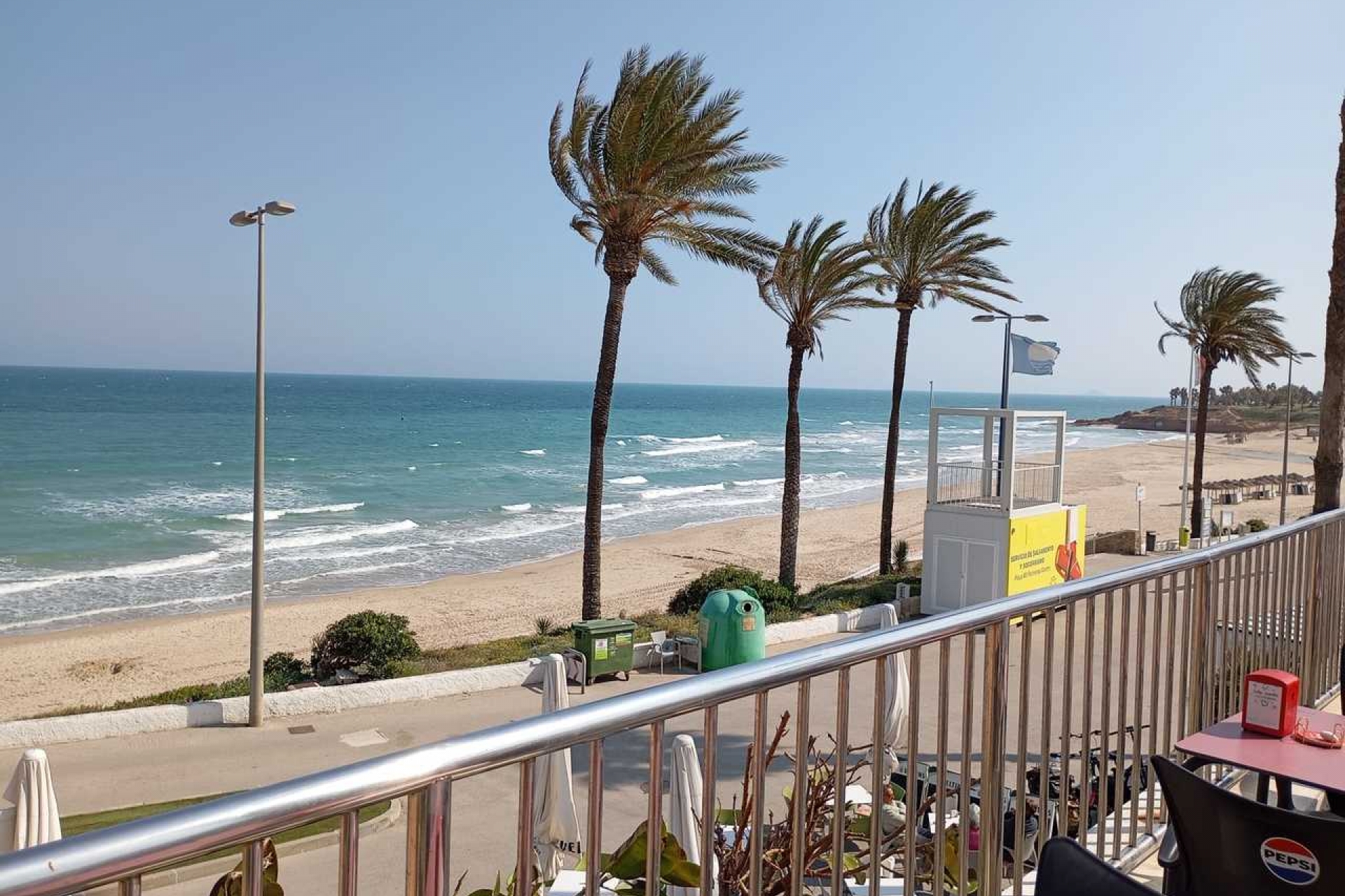 This frontline 3 bedroom second floor apartment (completely renovated in 2016) with frontal sea views is situated in Mil Palmeras, Alicante right in front of the beautiful long sandy Mil Palmeras beach. The apartment comes with a valid touristic license!The property will be sold fully furnished and consists of a bright living/dining room with direct access to the sunny terrace, a fully equipped open plan kitchen, three bedrooms with fitted wardrobes, two bathrooms (one is en-suite), air conditioning (hot/cold) throughout the property, shutters/blinds, two parking spaces (one parking space in the garage and one off road parking space on the plot)Surrounded by all local bars and restaurants, and frontline to the long sandy beaches. The building has a lift!Great rental potential.