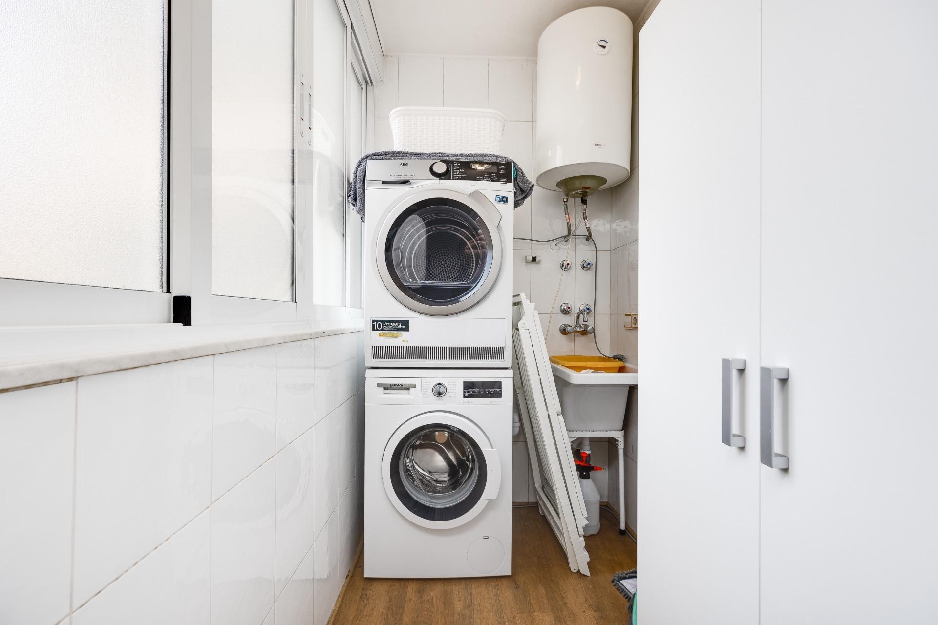 Spacious apartment in the centre of Torrevieja ☀️ Discover this fantastic apartment located in the very center of Torrevieja, just a few steps from all amenities, restaurants, and leisure areas. The property stands out for its generous spaces and comfortable layout, offering 3 spacious bedrooms and 2 full bathrooms, perfect for both year-round living and holidays. It features a bright living room with access to a balcony, ideal for relaxing and enjoying the Mediterranean climate. The kitchen leads to a practical interior patio equipped with a washing machine and dryer. The kitchen is big and independent. Additionally, it includes a parking space in the garage, a great advantage in such a central location. A perfect opportunity for those seeking space, comfort, and location. Legal expenses and VAT are not included in the price.