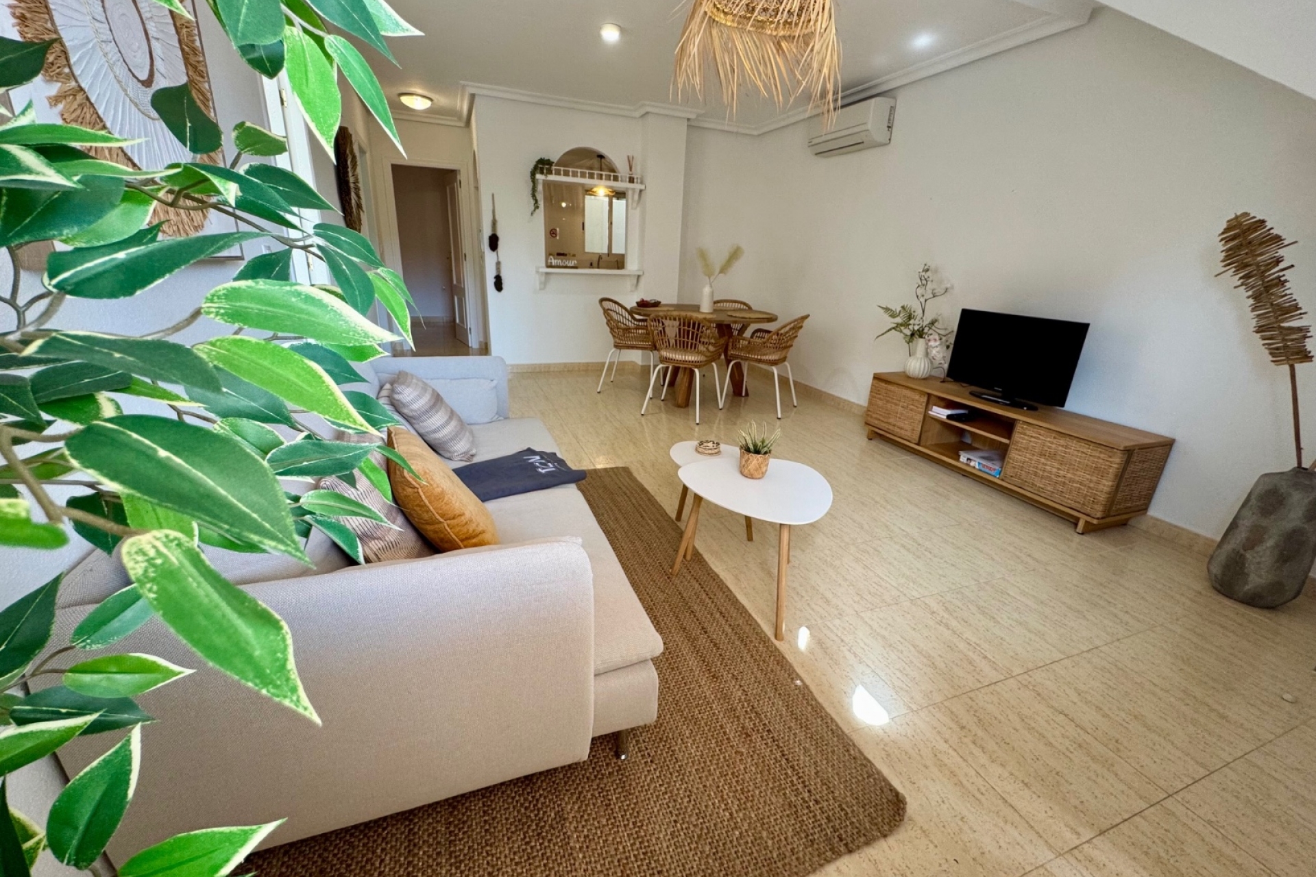In the quiet yet charming and typically Spanish village of Daya Vieja we offer a very well-maintained and cozy ground-floor apartment for sale. The sunny property features a spacious south-facing terrace and is located next to a pleasant park-like square with a lively chiringuito with a welcoming terrace.