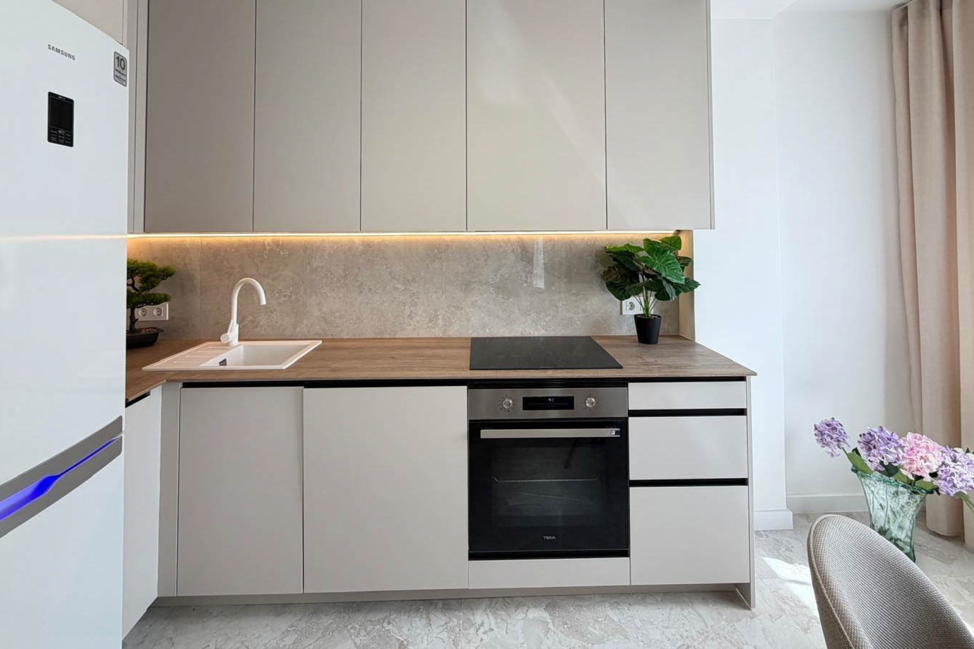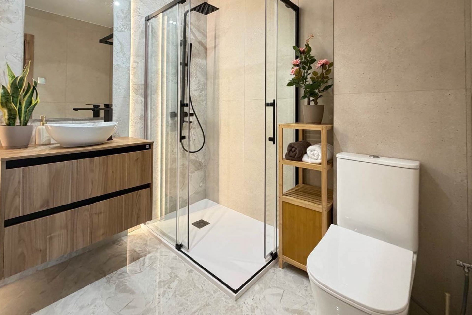 The property extends over approximately 92 m² and has been thoughtfully redesigned with high-quality materials and refined finishes. It features three generously proportioned bedrooms and a contemporary bathroom equipped with underfloor heating, adding a subtle yet luxurious level of comfort.