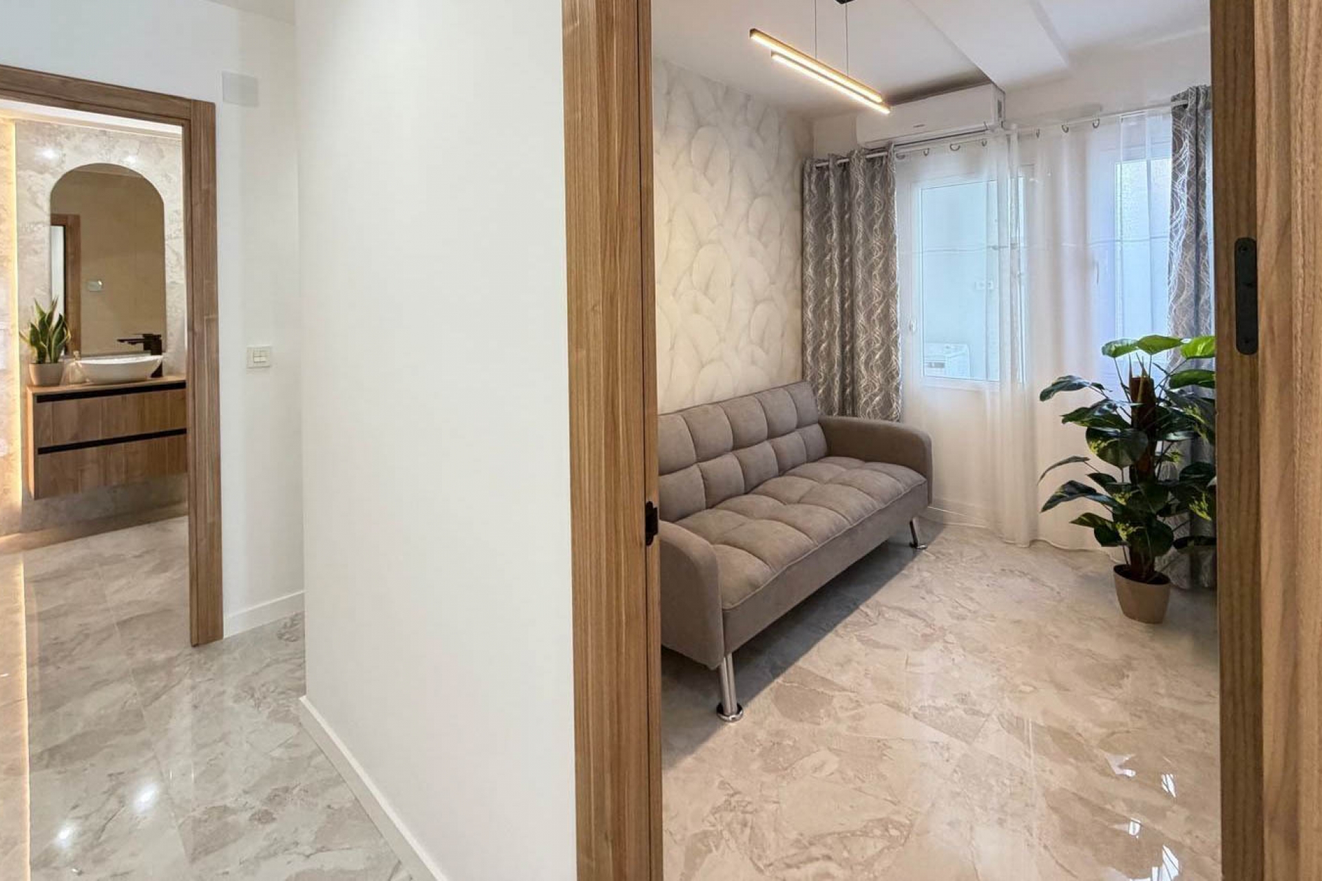 Situated on the fourth floor, the residence offers a rare sense of tranquillity and privacy, elevated above the surrounding area while remaining perfectly connected to the vibrant lifestyle of Torrevieja. Its desirable south-facing orientation ensures an abundance of natural light throughout the day, creating a warm and inviting atmosphere across every space.