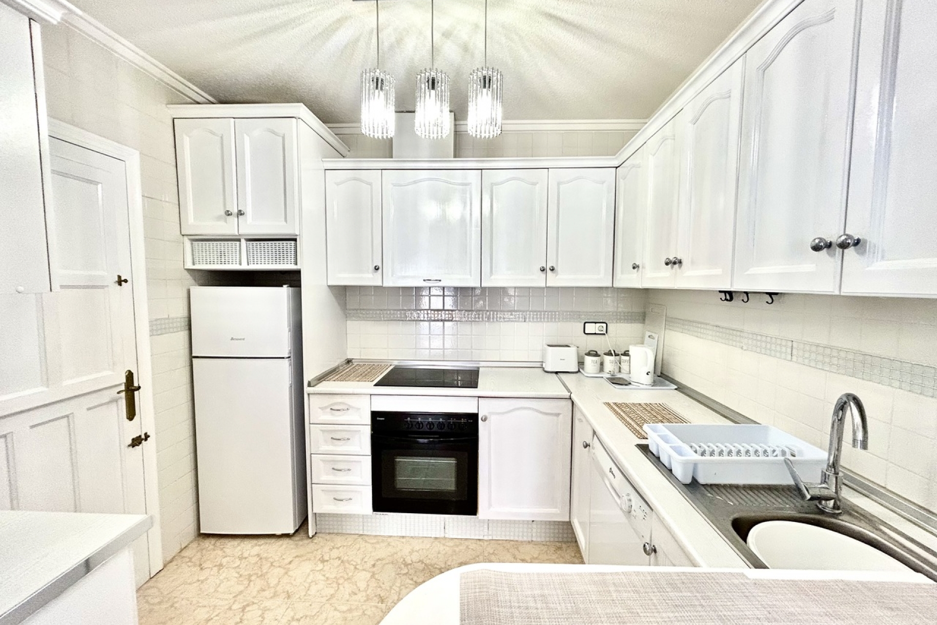Immaculate and very well presented bungalow style property for sale with sea views. Situated on a corner plot with a fantastic amount of private, outdoor space. Inside, the property offers 2 bedrooms, 1 bathroom, a slick American style kitchen, spacious living and dining areas which lead out to the glazed in terrace. The property has a private roof solarium which is accessed via an external staircase and boasts the sun all day long, here you have wonderful views towards the Mediterranean sea! The property has been tastefully renovated throughout and is sold fully furnished with air-conditioning. The property forms part of the well kept community 'Serena V' which shares a communal pool and bathing areas and is just a few minutes walk from the nearest supermarket, restaurants, bars and convenience stores.